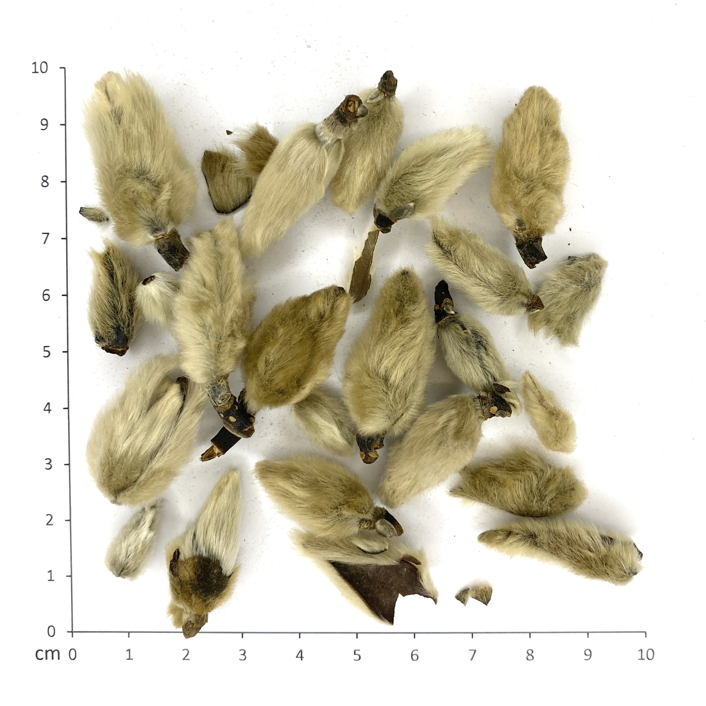 Senfgelbe, außen weiß-wollig behaarte Blütenblätter, sowie Fragmente davon.