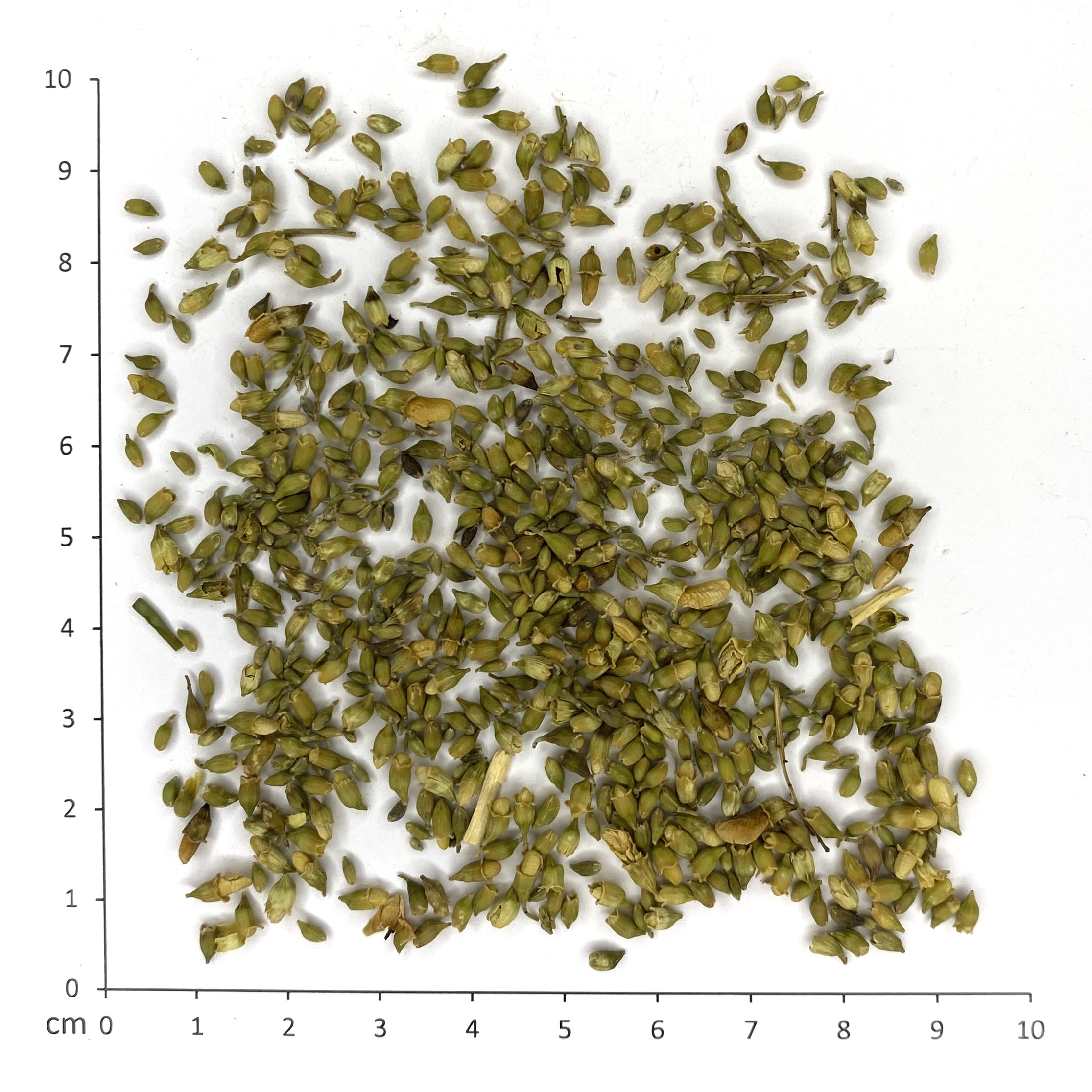 Charakteristische, netzadrige, häutige Fragmente des Hochblattes. Stark geschrumpfte Blüten mit filzig-grauem, kugeligem Fruchtknoten.